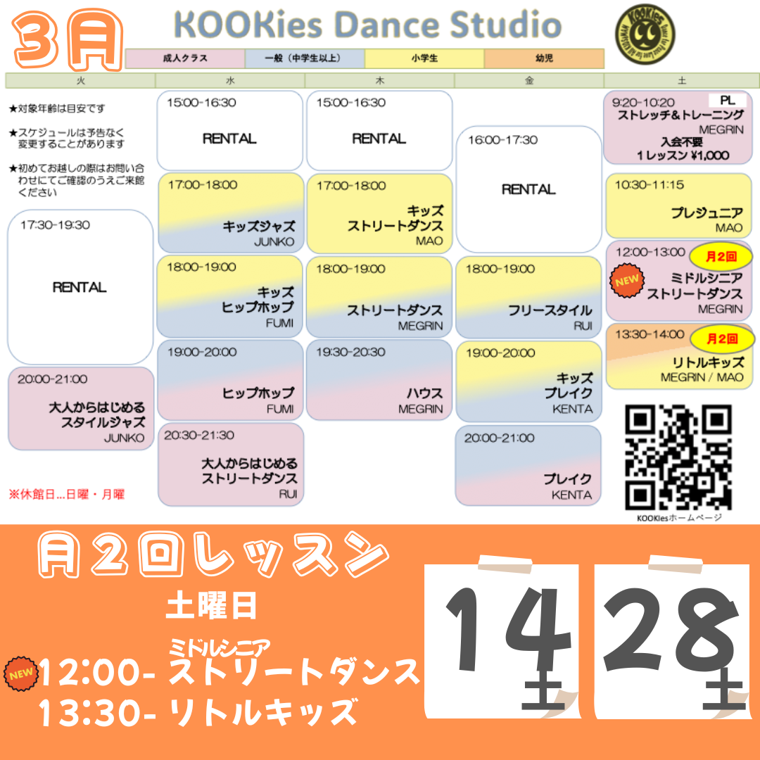 3月のリトルキッズとミドルシニアストリートダンスは